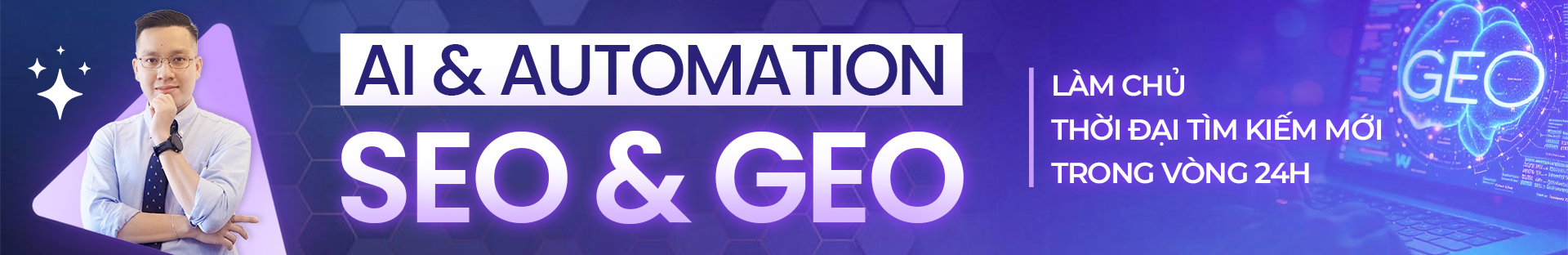 AI & Automation SEO & GEO là giải pháp tiên phong giúp bạn tối ưu website toàn diện cho cả Google và các công cụ tìm kiếm AI (ChatGPT Search, Perplexity AI, Google AI Overview,…)